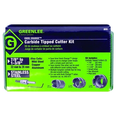 Greenlee 50058207 Kwik Change Hole Cutter Kit, Carbide-Tipped, 7/8 in to 1-3/8 in Cut dia