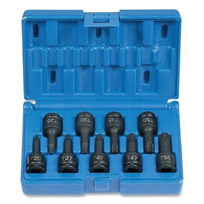 Grey Pneumatic 1200T Impact Driver Set, 3/8 in Drive, T20 to T55 Size, 9-Pc Internal Star