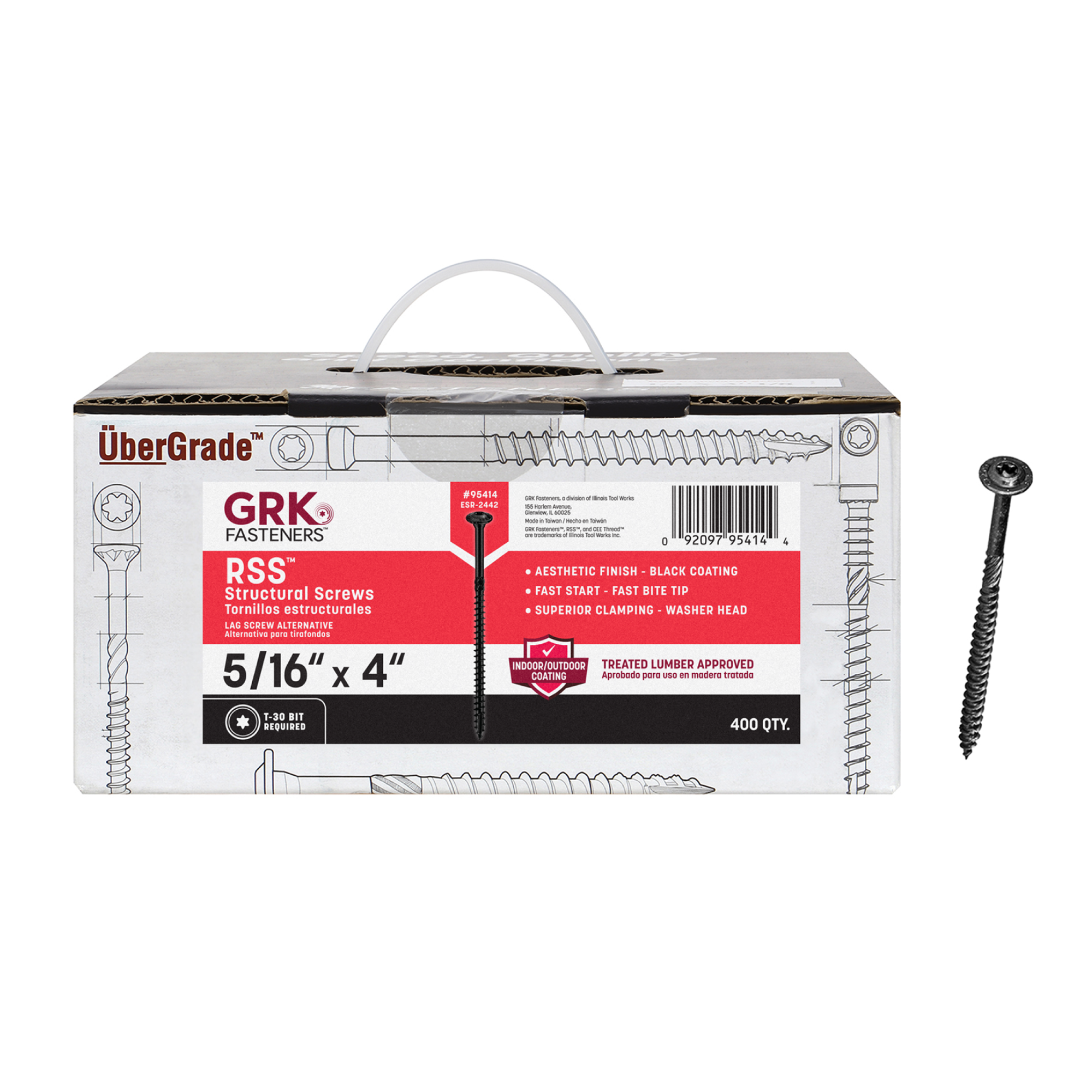 GRK Fasteners RSS™ 5/16 x 4 Inch, Black Multi-Purpose Structural Screws, 400 PCS, Rust Resistant Climatek™ Coating, Decorative Hardware Decking Screws, Star Drive Recess, T-30 Bit Included, Black