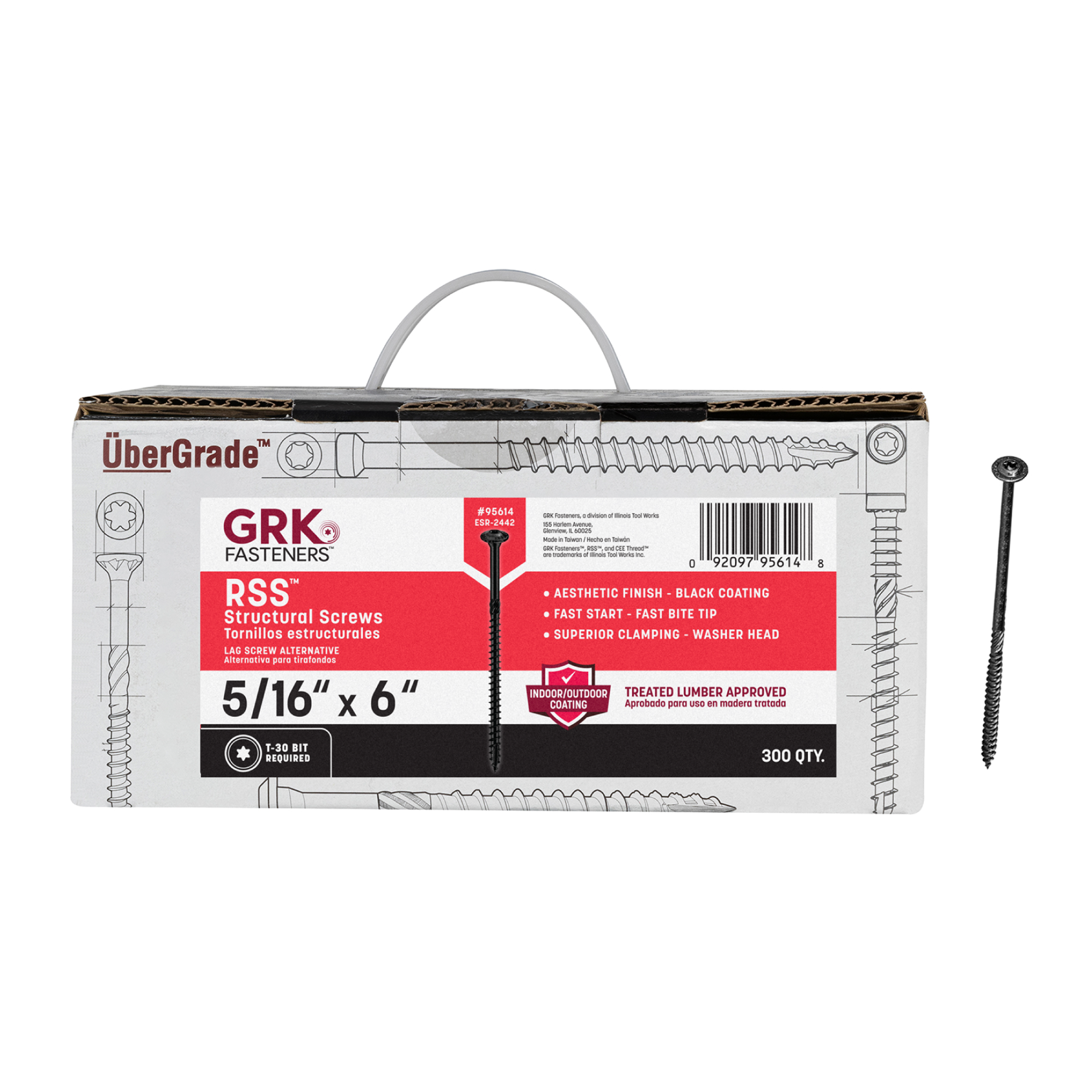 GRK Fasteners RSS™ 5/16 x 6 Inch, Black Multi-Purpose Structural Screws, 300 PCS, Rust Resistant Climatek™ Coating, Decorative Hardware Decking Screws, Star Drive Recess, T-30 Bit Included, Black