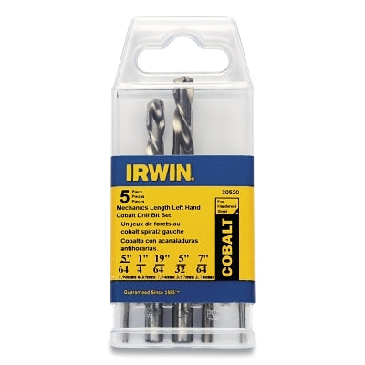 Irwin 30520 5-Piece Left Hand Drill Bit Sets M-42 Cobalt High-Speed Steel 5/64 in to 19/64 in Cutting Diam