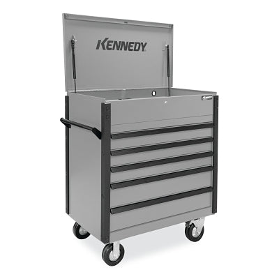 Introducing the Kennedy 395MPCGY 5-Drawer Maintenance Pro Industrial Tool Cart, your ultimate companion for organization and efficiency in any workshop or garage. With a robust storage capacity of 19,052 in³, this meticulously designed tool cart combines durability with functionality, ensuring that your tools are always at your fingertips.