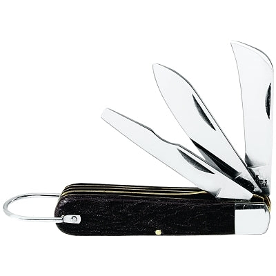 Klein Tools 15506 3-Blade Pocket Knives, Steel Blade, Plastic, Black