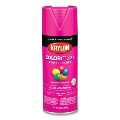 Transform your projects with the vibrant and glossy finish of Krylon K05528007 COLORmaxx Paint + Primer Spray Paint in Mambo Pink. This 12 oz spray can combines both paint and primer in one, ensuring smooth, even coverage and superior adhesion on a variety of surfaces. Whether you're revamping furniture, personalizing crafts, or adding a pop of color to home décor, this spray paint offers professional-quality results that last.