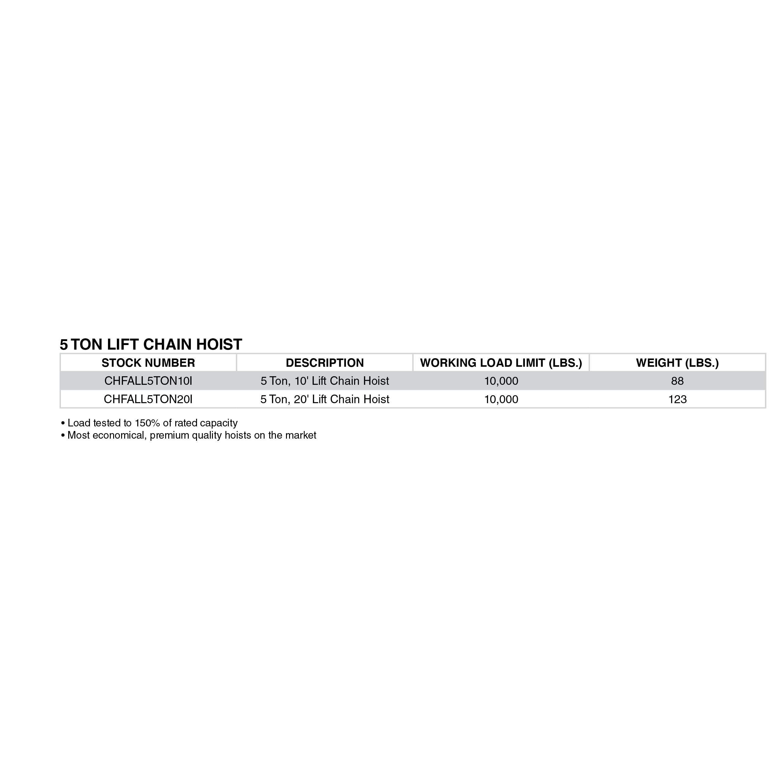 - 5' Fall Length: The 5-foot fall gives you the flexibility to maneuver and position loads effectively, making it suitable for a variety of lifting applications.