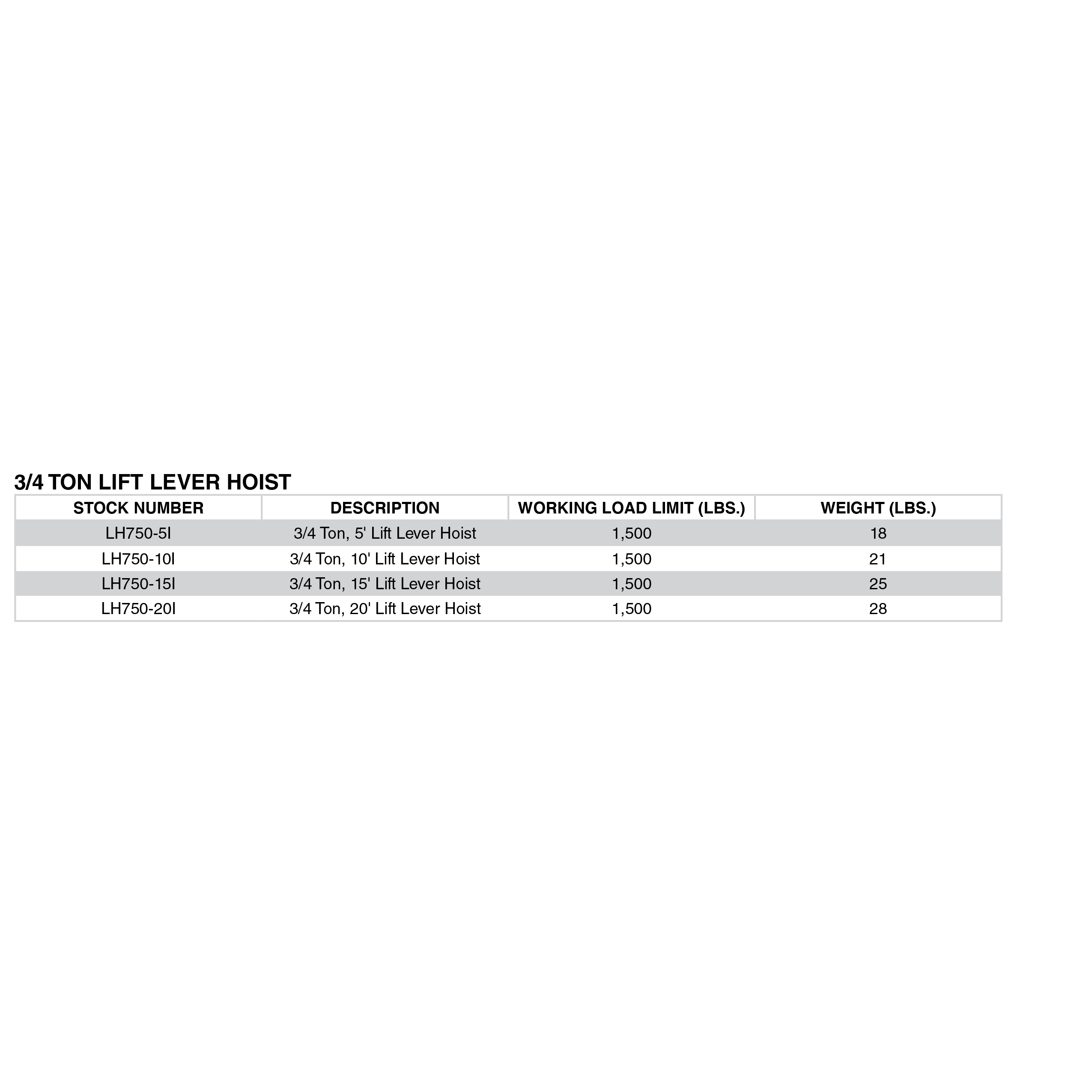 Make your lifting tasks easier and more efficient with the LIFSTAR LH750-20 3/4 TON LIFT LEVER HOIST. Invest in this essential tool today and experience the difference in quality and reliability during your heavy lifting operations.