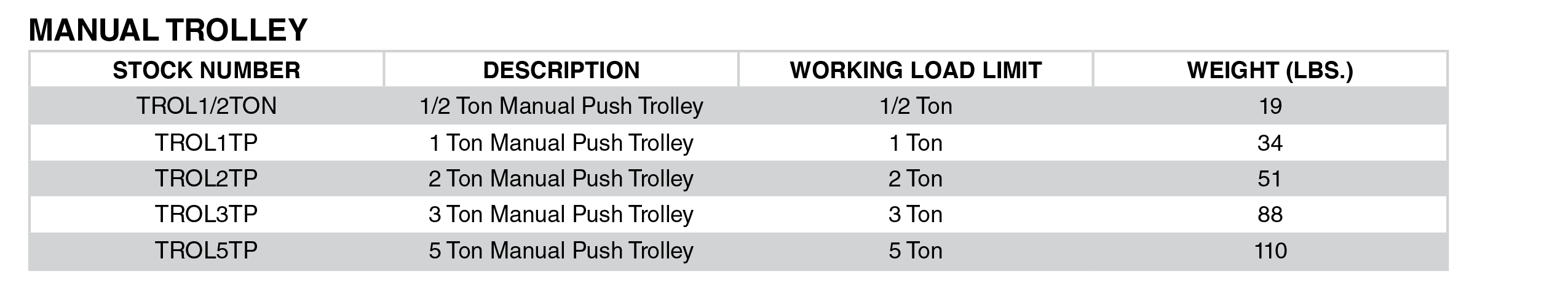 Choose the LIFSTAR TROL5T MANUAL TROLLEY for a perfect blend of strength, efficiency, and ease of use. Elevate your lifting capabilities today and experience the difference!