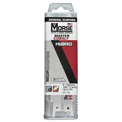 M.K. Morse RB6501014T50 Master Cobalt Hybrid Wood/Metal Bi-Metal Reciprocating Saw Blade, 0.050 in x 6 in L x 3/4 in W, 10/14 TPI, STRT, 50 EA/PK