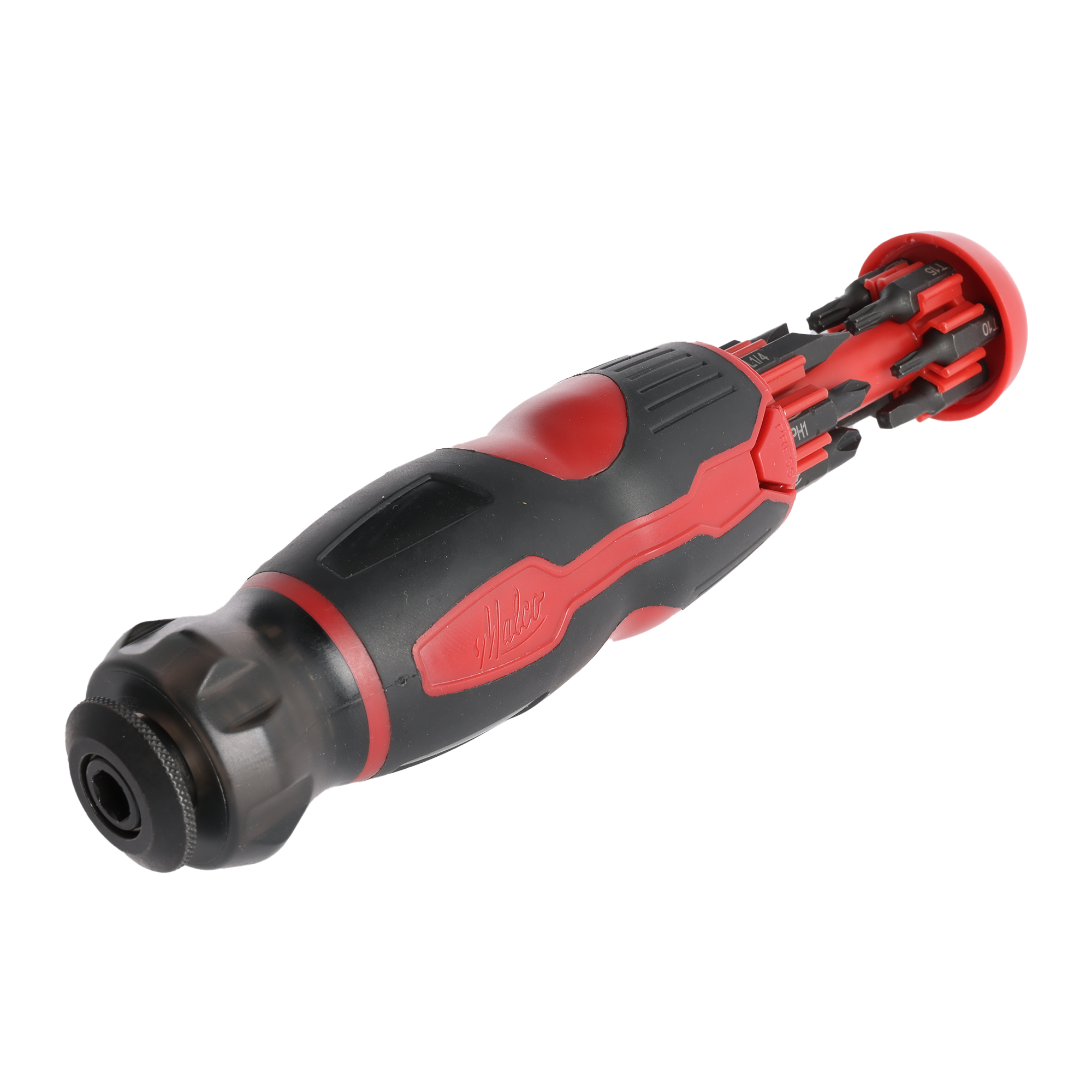 A standout feature is the integrated bit storage compartment built directly into the handle, securely holding 12 included impact-rated 1" insert bits. This built-in storage keeps essential bits organized, accessible, and ready for quick transitions between tasks—eliminating downtime and lost components. A washer-style quick-release mechanism ensures fast, secure bit changes for continuous workflow on the jobsite. Handle length is 4.9" (124.5 mm).