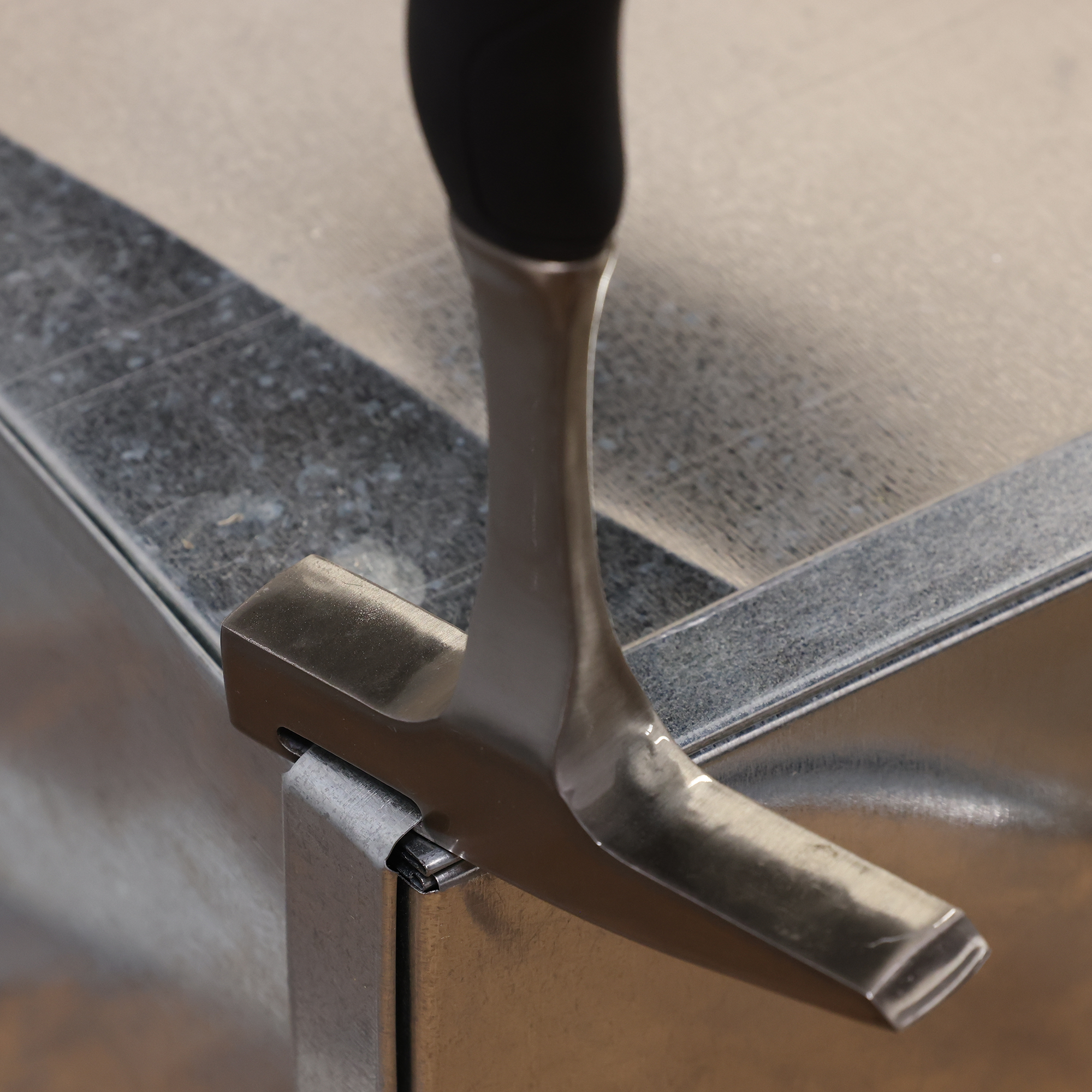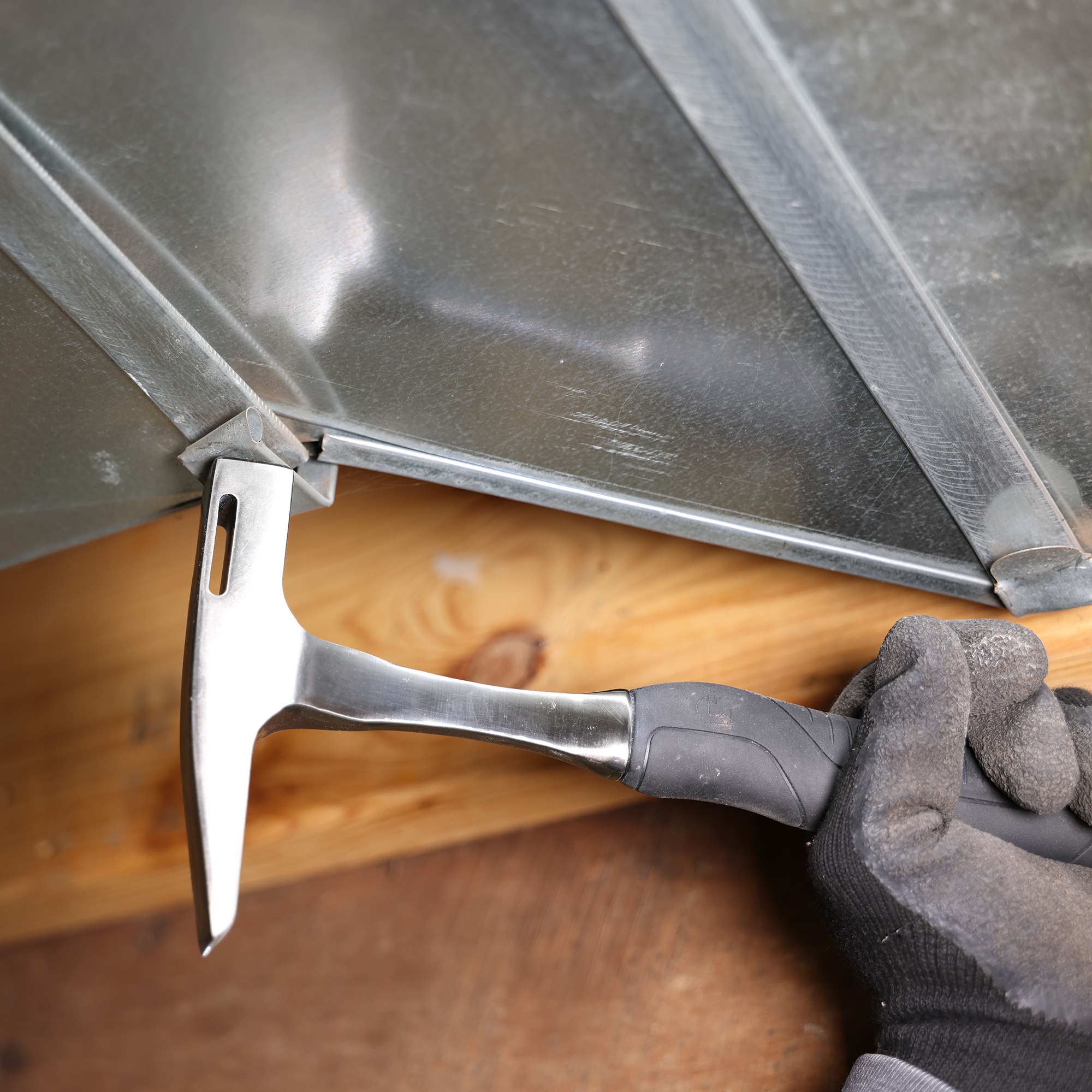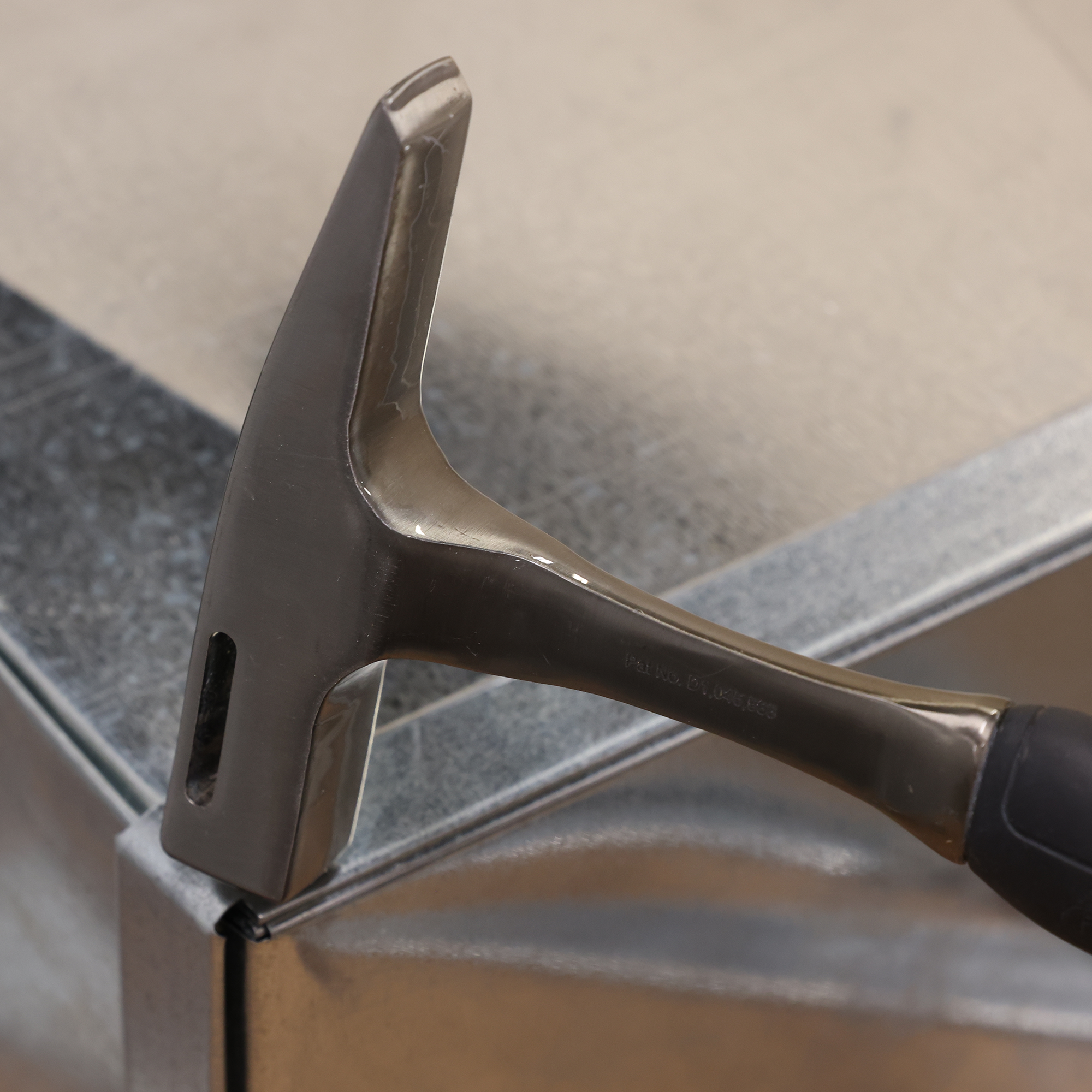 The Malco Tin Master™ Hammer (TMH1) is a jobsite-ready tool built for HVAC and sheet metal pros who need strength, speed, and reliability. This 18 oz. tinner’s hammer is forged from hardened steel and designed for heavy use in tough conditions. What sets it apart is the integrated drive cleat slot—no more reaching for another tool to bend cleats. The built-in slot handles all common cleat sizes and helps you move faster with fewer steps. Every part of this hammer is engineered for performance. Built from forged steel, the Tin Master™ Hammer ensures unmatched durability. Each hammer section is individually hardened and tempered, providing the right balance of toughness and flexibility. It’s tough enough for repeated strikes on heavy-gauge metal without wearing out or breaking down. The handle features a rugged ergonomic grip for all-day comfort and control. Whether you’re swinging full force or choking up for precise hits, the grip keeps the hammer steady in your hand and helps reduce fatigue. The Tin Master™ is built to perform—no frills, just a tough, dependable tool that works as hard as you do.