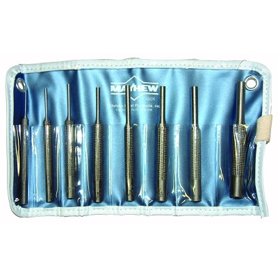 Mayhew Tools 62060 8 Pc Knurled Pin Punch Kits, Round, English, Pouch