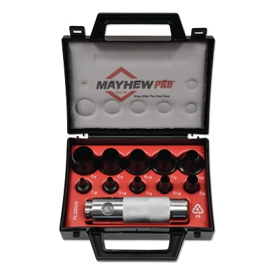 Mayhew Tools 66008 11 Pc Hollow Punch Tool Kits, Round, English, Handle, Case