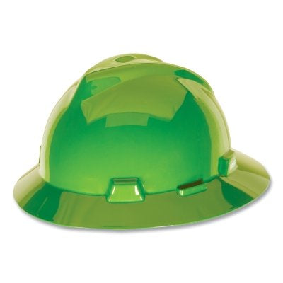 MSA 815562 V-Gard Protective Hat, Staz-On, Full-Brim Hat, Slotted, Bright Lime Green