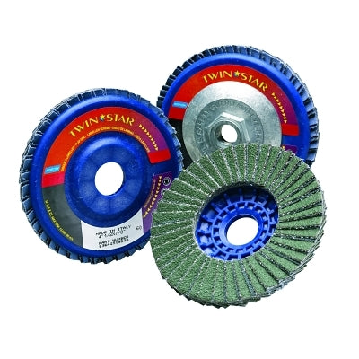 Built with a 5/8 inch arbor and designed to operate safely at speeds up to 13,000 rpm, these flap discs provide reliable stability and optimal control during use. The innovative TwinStar technology enhances the life of the disc by combining two unique abrasive materials, reducing downtime and increasing productivity.