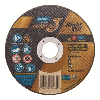 Norton 66252838462 Quantum3 RightCut SG CA Type 01/41 Small Diameter Cut-Off Wheel, 5 in dia, 1/16 in Thick, 7/8 in Arbor, 36 Grit