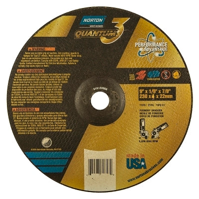 Norton 66252839432 Quantum3 SG CA Type 27 Grinding Wheel, 9 in dia, 1/8 in Thick, 7/8 in Arbor, 24 Grit, Ceramic Alumina
