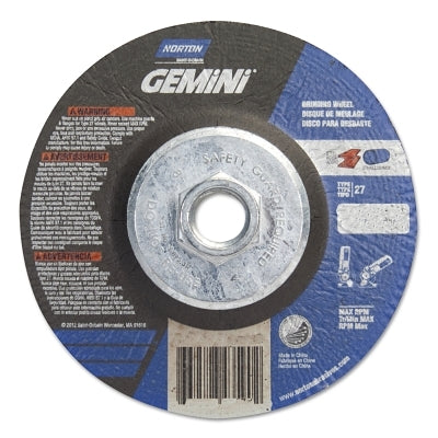 Norton 66252841903 Gemini RightCut Right Angle Cut-Off Wheel, Type 27/42, 4-1/2 in dia x 3/32 in Thick x 5/8 in-11 Arbor, 10 EA/PK