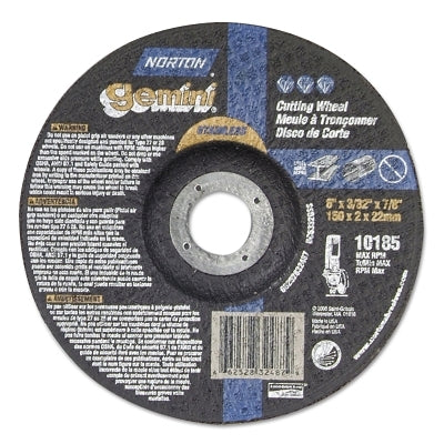 Norton 66252841906 Gemini RightCut Right Angle Cut-Off Wheel, Type 27/42, 6 in dia x 3/32 in Thick x 7/8 in Arbor, 25 EA/PK