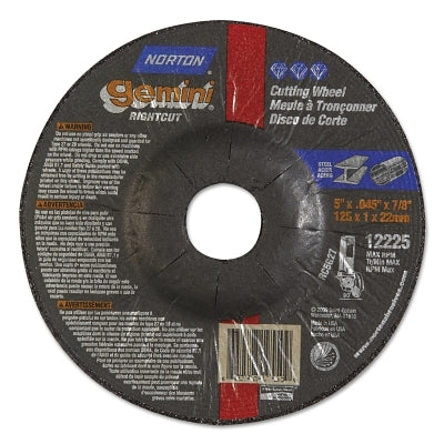 Norton 66252841914 Gemini RightCut Right Angle Cut-Off Wheel, Type 27/42, 5 in dia x 0.045 in Thick x 7/8 in Arbor, 25 EA/PK