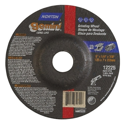 Norton 66252843598 Gemini Type 27 Grinding and Cutting Wheel, 5 in dia x 1/4 in T x 7/8 in Arbor Hole, AO