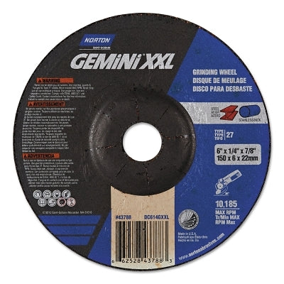 Norton 66252843788 GEMiNi XXL Depressed Center Wheel, 6 in dia, 1/4 in Thick, 7/8 in Arbor, Alum Oxide