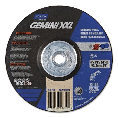 Norton 66252843789 GEMiNi XXL Depressed Center Wheel, 6 in dia, 1/4 in Thick, 5/8 in Arbor, Alum Oxide