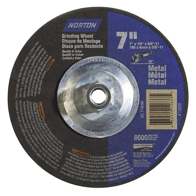 Norton 66252912633 Depressed Center Metal/Masonry Wheel, 7 in Dia, 1/4 in Thick, 5/8 Arbor