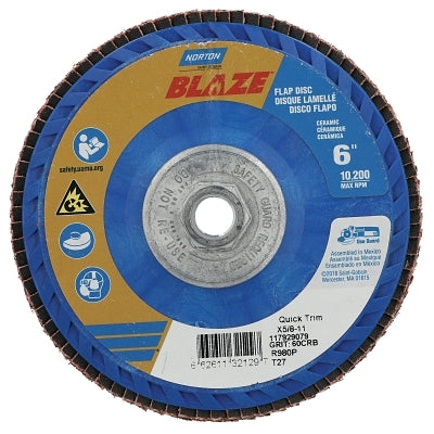Norton 66261132129 BLAZE R980P Flap Disc, Plastic Flat, 6 in dia, 60 Grit, 5/8 in-11 arbor, 10200 RPM