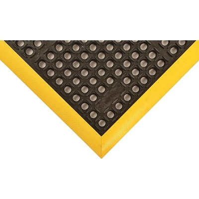 NoTrax 549S4124YB Safety Stance Drainage Anti-Fatigue Mat, 549, 4 Sided, 7/8 in x 40 in W x 124 in L, Rubber, Black/Yellow