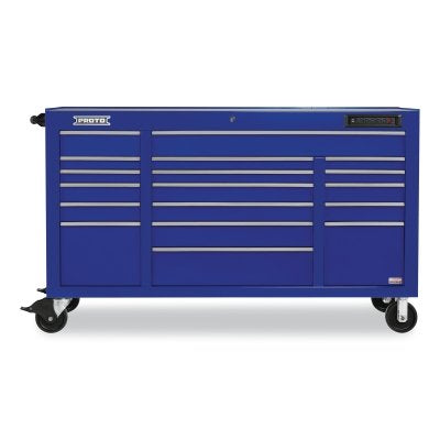 Proto J556741-18BLPDP 550E Power Workstation Rolling Tool Cabinet, 67 in W x 25-1/4 in D x 41 in H, 18-Drawer, Gloss Blue, Front Facing Power Strip