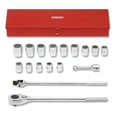 Proto J57100A 17 Pc 1 in Drive 12 Pt Socket Set, SAE