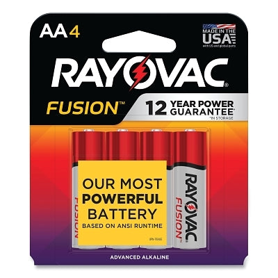 RAYOVAC 815-4TFUS FUSION Advanced Alkaline Battery, AA, 1.5 V