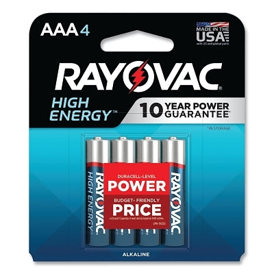 RAYOVAC 824-4T HIGH ENERGY Alkaline Battery, AAA, 1.5 V, Pack of 4