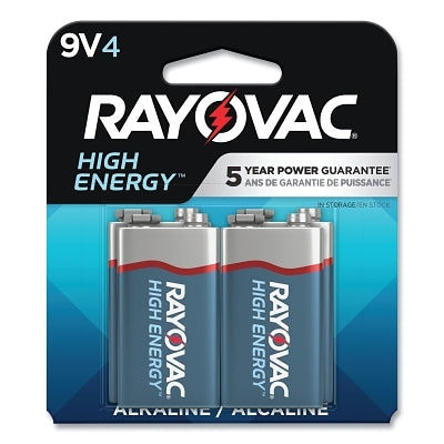 RAYOVAC A1604-4T HIGH ENERGY Alkaline Battery, 9 V, Pack of 4