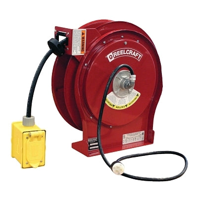 Reelcraft L55501237 Heavy Duty Power and Light Cord Reels, 12/3 AWG, 15A, 50 ft, Duplex OutletBox