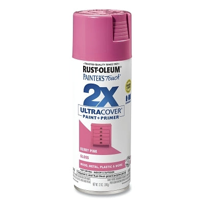 Rust-Oleum 334025 Painter's Touch 2X Ultra Cover Gloss Spray Paints + Primer, 12 oz, Aerosol Can, Berry Pink