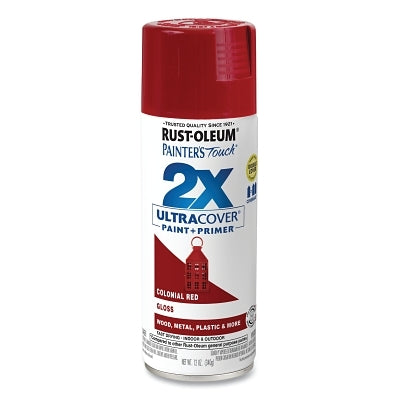 Rust-Oleum 334030 Painter's Touch 2X Ultra Cover Gloss Spray Paints + Primer, 12 oz, Aerosol Can, Colonial Red