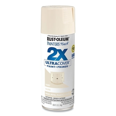 Rust-Oleum 334035 Painter's Touch 2X Ultra Cover Gloss Spray Paints + Primer, 12 oz, Ivory