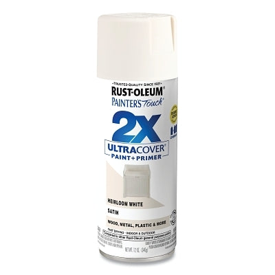 Rust-Oleum 334071 Painter's Touch 2X Ultra Cover Satin Spray Paint, 12 oz, Heirloom White