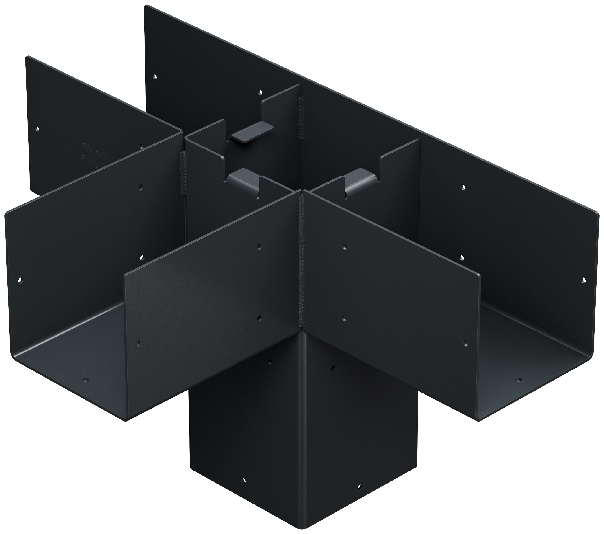 Crafted from ZMAX®-galvanized steel and coated with a sleek black powder finish, the Sage connector not only provides exceptional durability but also enhances the aesthetic appeal of your outdoor structures. With its four-way 90° angle design, it ensures a reliable connection that stands the test of time.