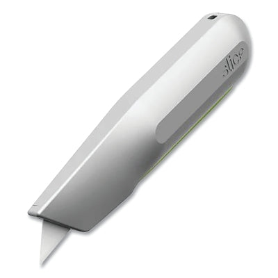 Slice 10493 Squeeze Knife, 13/16 in L, Automatic Retracting, Zirconium Oxide, Nylon Handle, Gray/Green