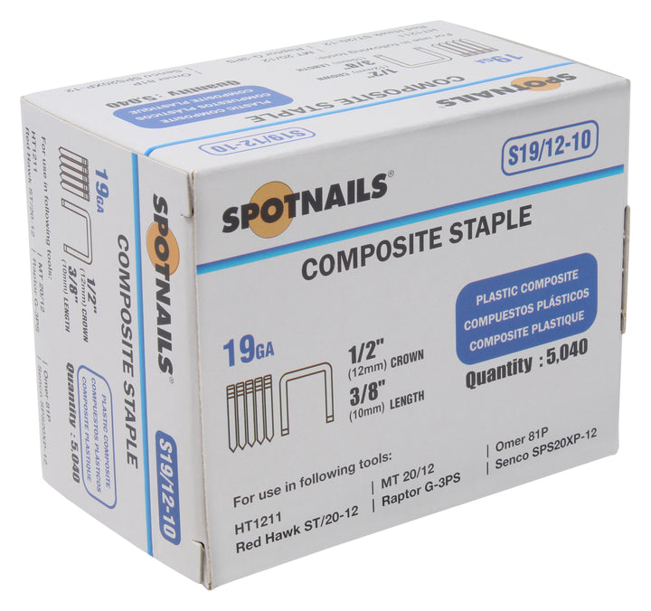 Spotnails S19/12-10 19GA 1/2" Crown x 3/8" Leg Composite Staples 5040 Count