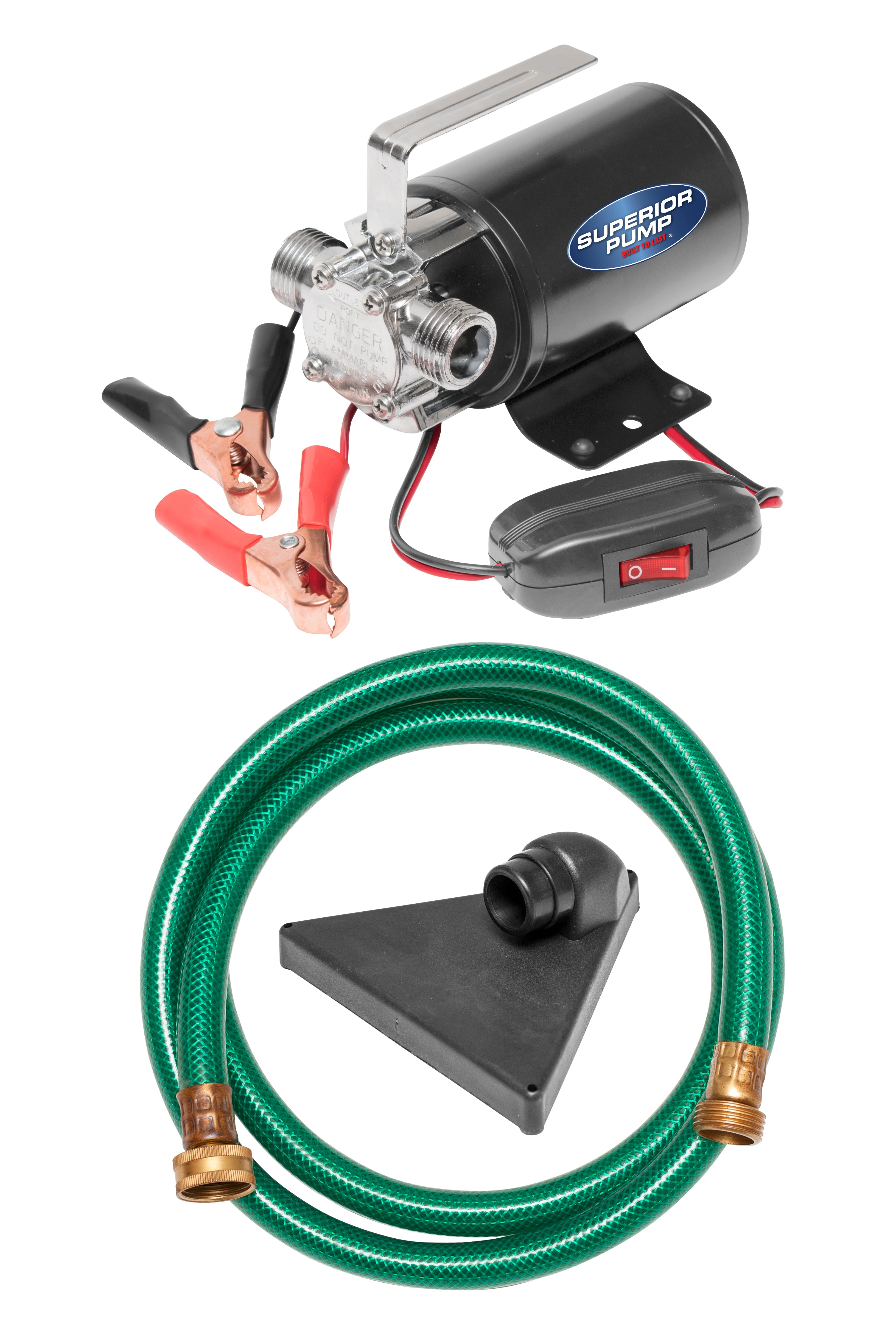 Superior Pump 90045 12 Volt Transfer Pump with 6-Foot Suction Hose, Black