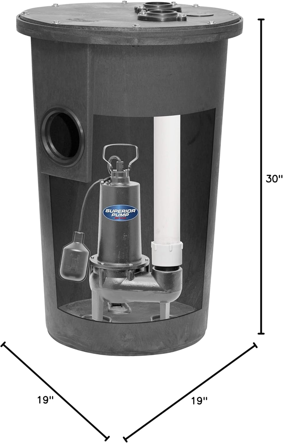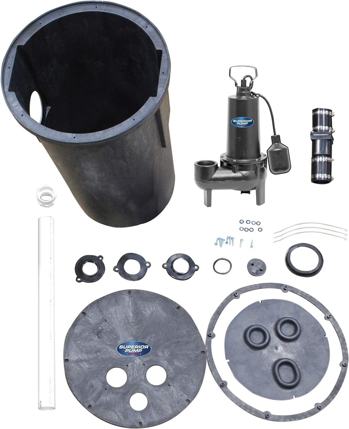 Superior Pump 93015-U Cast Iron Tethered Float Switch Sewage Pump with Basin Kit, 1/2 HP, Black