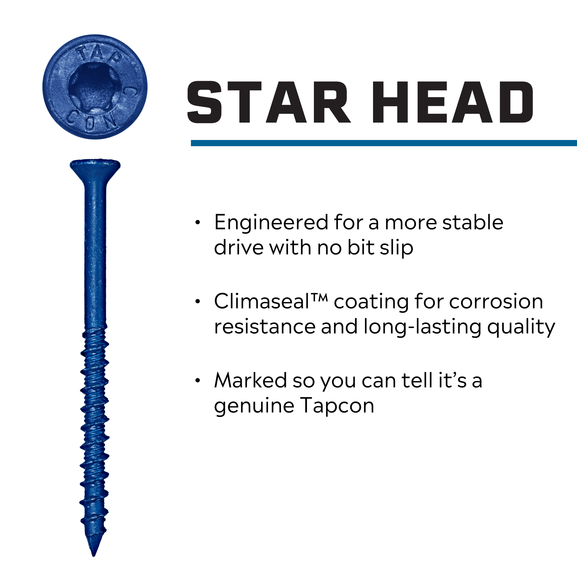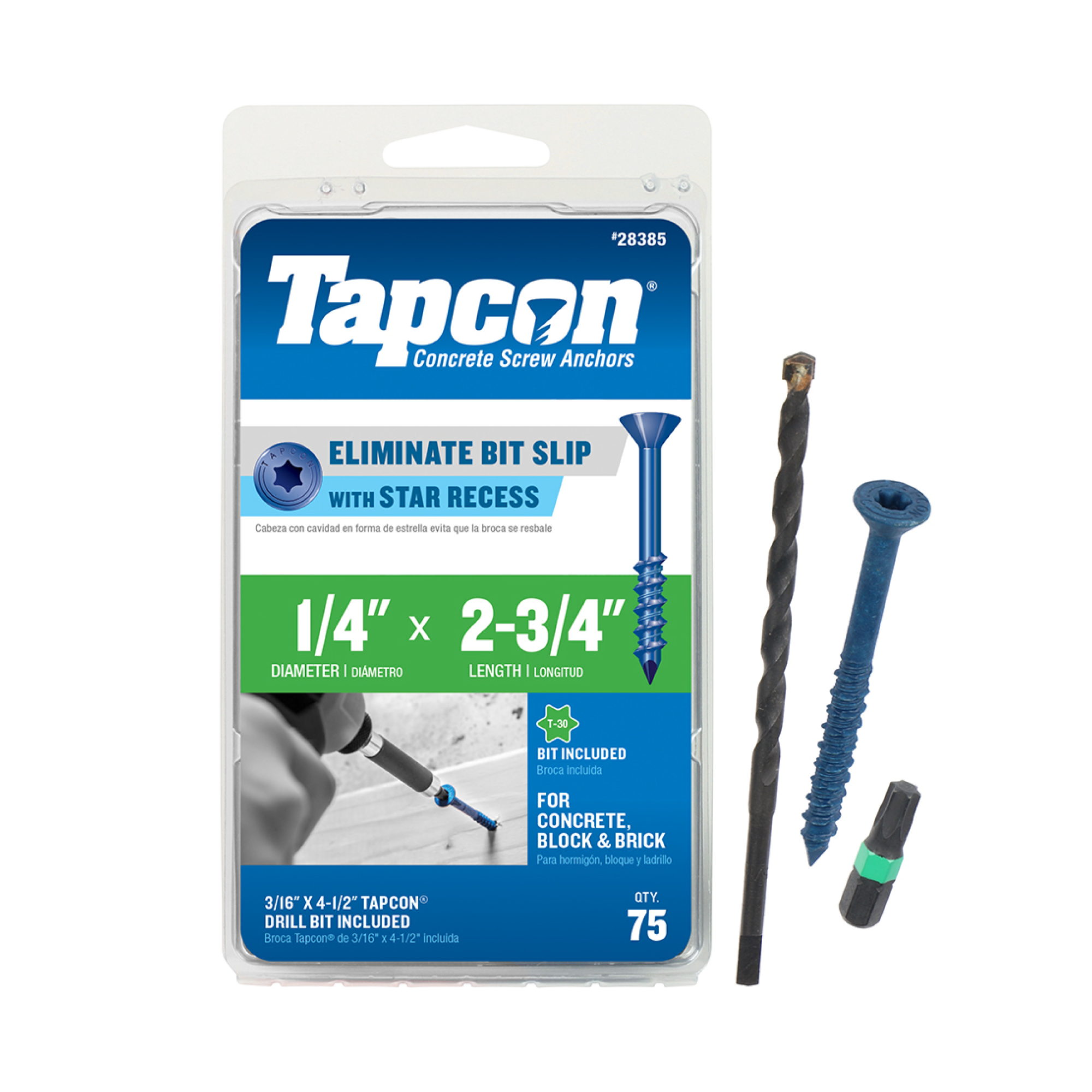 Tapcon 1/4 x 2-3/4 Inch Blue Climaseal® Star Head Concrete Anchors, 75 PCS, Corrosion Resistant Coating, Heavy-Duty Concrete and Masonry Screws, Superior Holding Strength, Drill & T-30 Bit Included