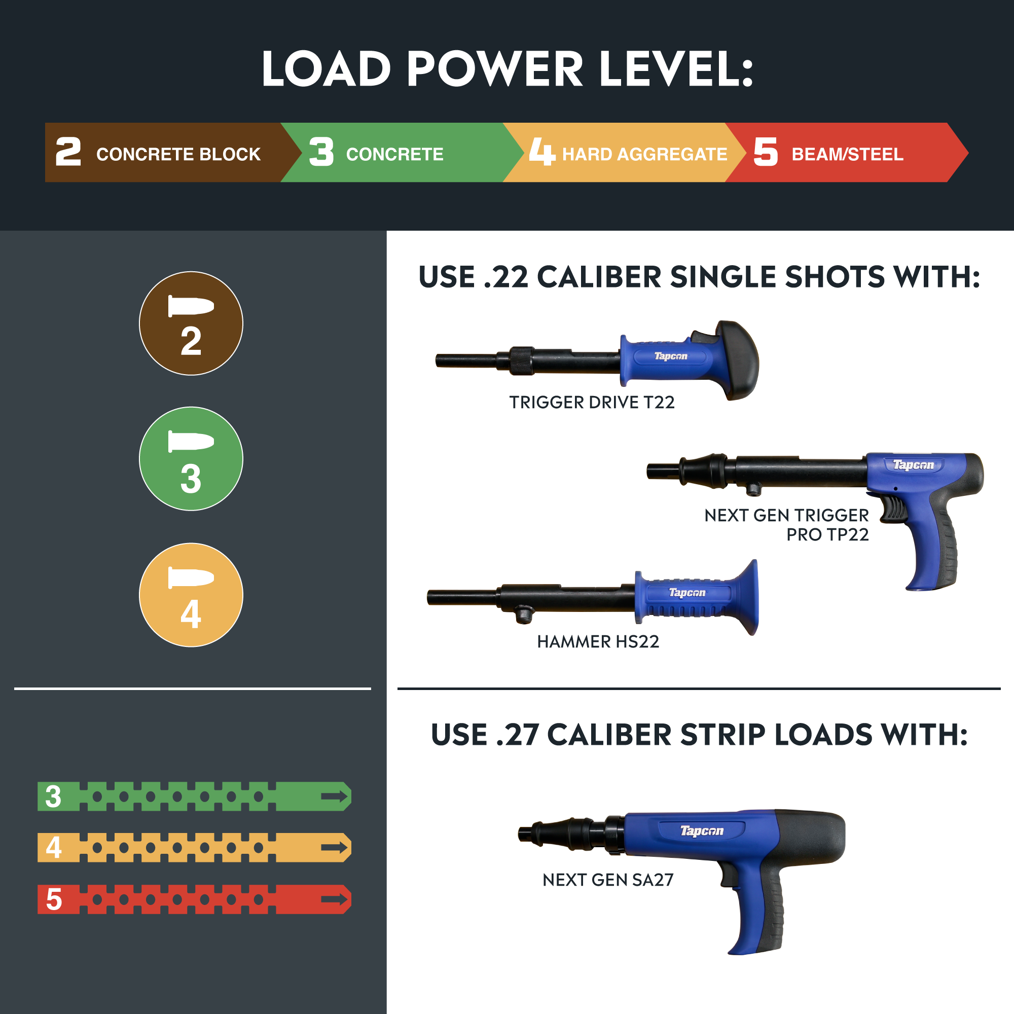 Tapcon HS22 Single Shot Powder Actuated Hammer Tool, .22 Caliber, Multi-Purpose Fastening Solution with Large Strike Point, Occasional Use for Hollow Block, Concrete, or Hard Aggregate