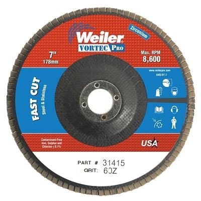 Weiler 31415 7" Abrasive Flap Disc, Flat, Phenolic Backing