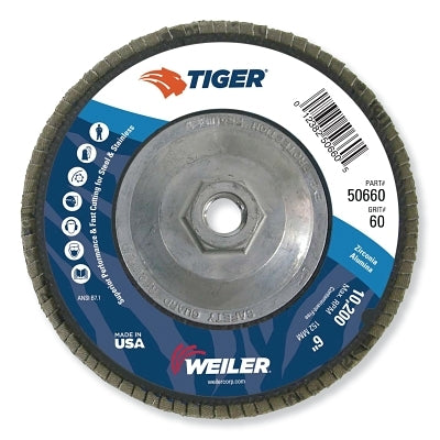 Weiler 50660 Tiger Disc Abrasive Flap Disc 6 in dia 60 Grit 5/8 in-11 10200 rpm Type 29