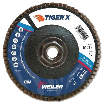 Weiler 51212 Tiger X Flap Disc, 5 in Angled, 40 Grit, 5/8 in - 11 Arbor