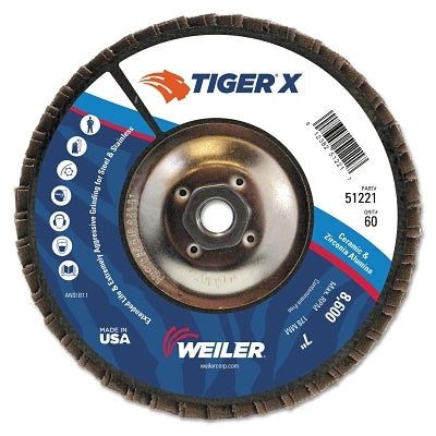 Weiler 51221 Tiger X Flap Disc, 7 in Angled, 60 Grit, 5/8 in - 11 Arbor